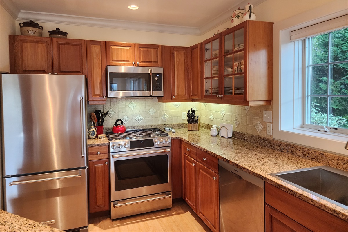 – Gourmet kitchen featuring modern appliances, stone countertops, and ample storage
