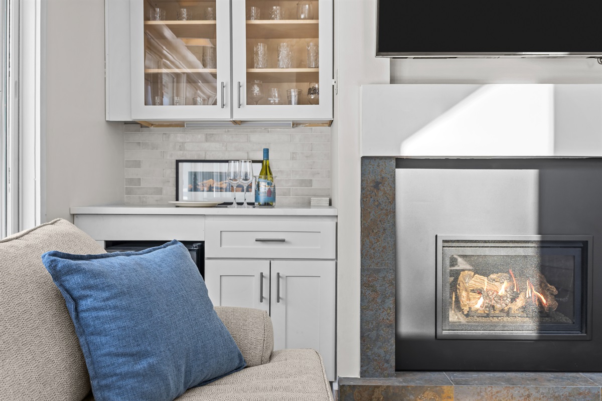 Comfort: Cozy gas fireplace, plush seating, flat-screen TV with streaming capability, high-speed Wi‑Fi.